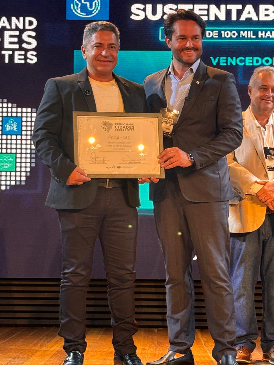 Araxá foi reconhecida como referência em gestão ambiental e sustentável. O município conquistou o 1º lugar em Sustentabilidade no Prêmio Band Cidades Excelentes, durante cerimônia realizada nesta terça-feira (14), em Belo Horizonte. O evento reuniu autoridades, prefeitos e representantes de diversas cidades mineiras, em uma noite de destaque para as boas práticas de gestão pública no estado.