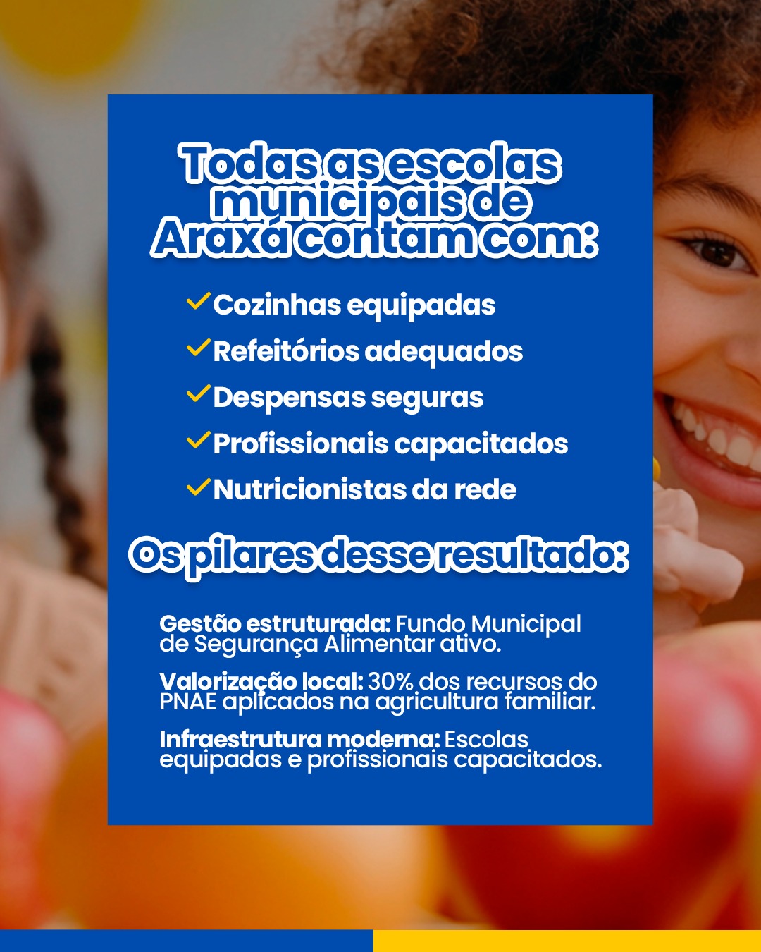 O resultado é reflexo de um trabalho integrado entre Educação, Agricultura e Saúde, um modelo que alia planejamento, qualificação e compromisso social. Todas as escolas municipais de Araxá contam com: