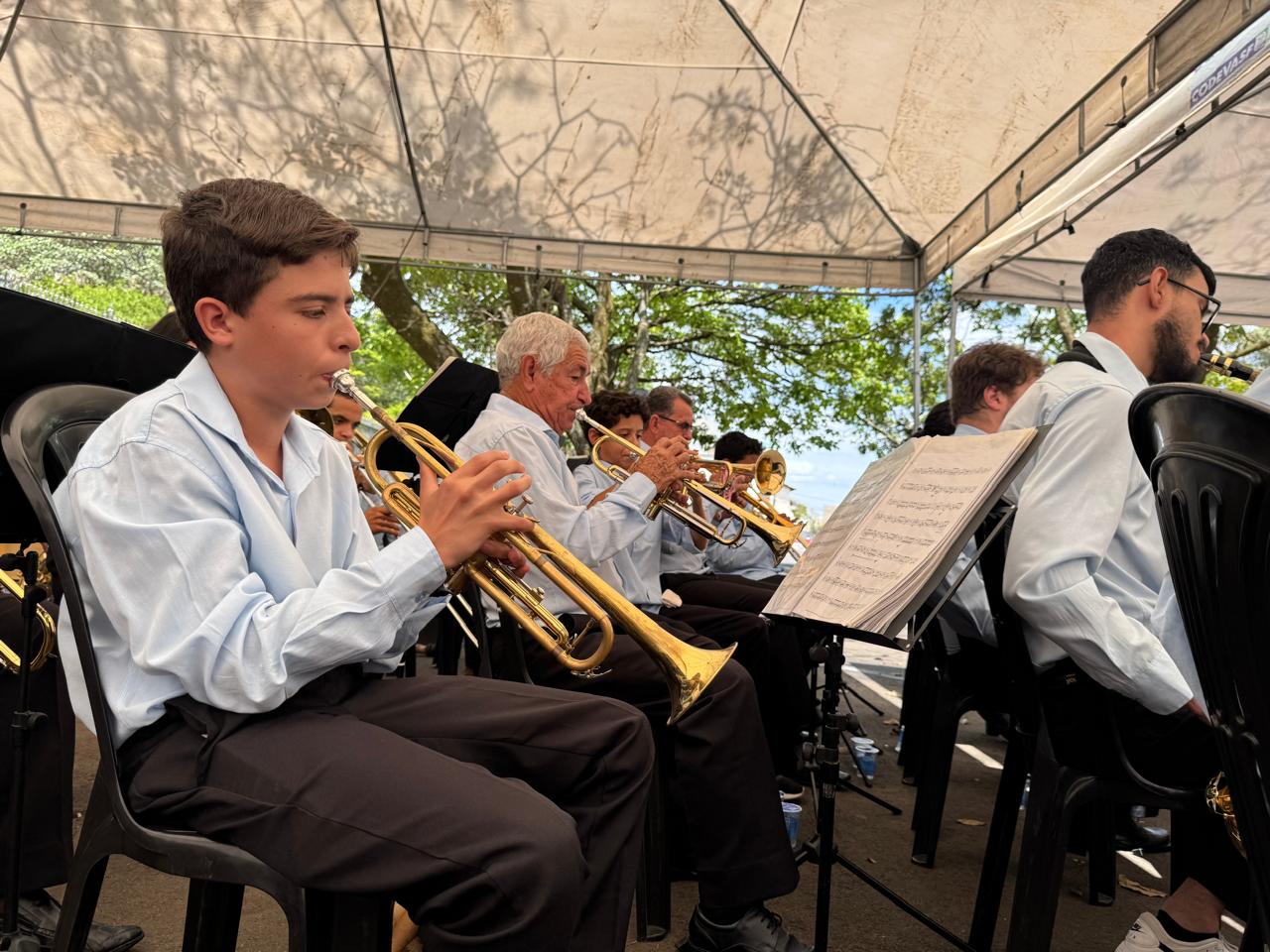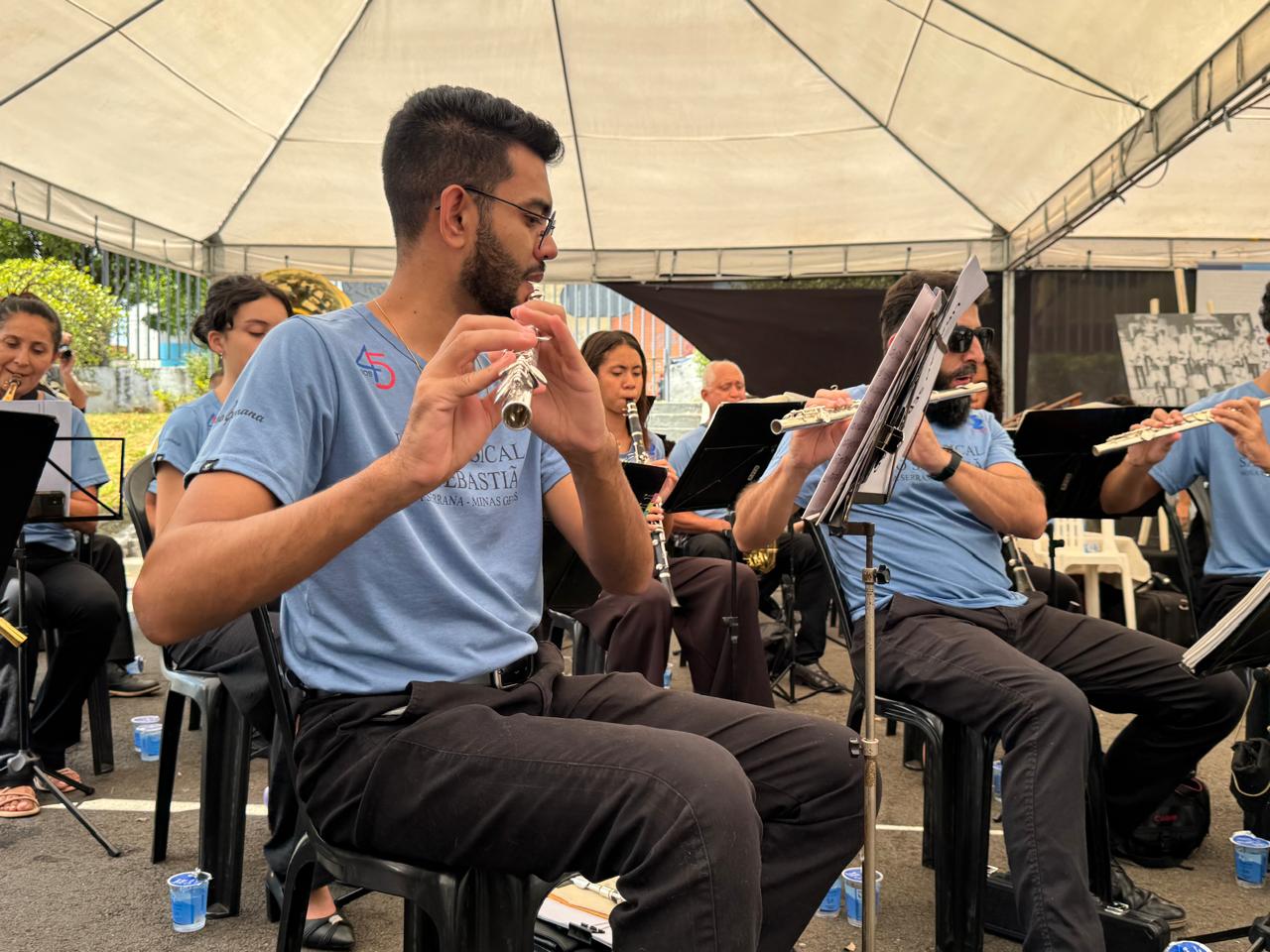 O evento começou com um cortejo vibrante pelo Calçadão da Rua Presidente Olegário Maciel, que atraiu a atenção de quem passava pelo centro. Moradores, comerciantes e visitantes pararam para acompanhar as melodias executadas pelas corporações musicais, transformando a região central em um grande palco a céu aberto. Após o cortejo, os presentes seguiram para o pátio da FCCB, onde as bandas participantes se apresentaram.