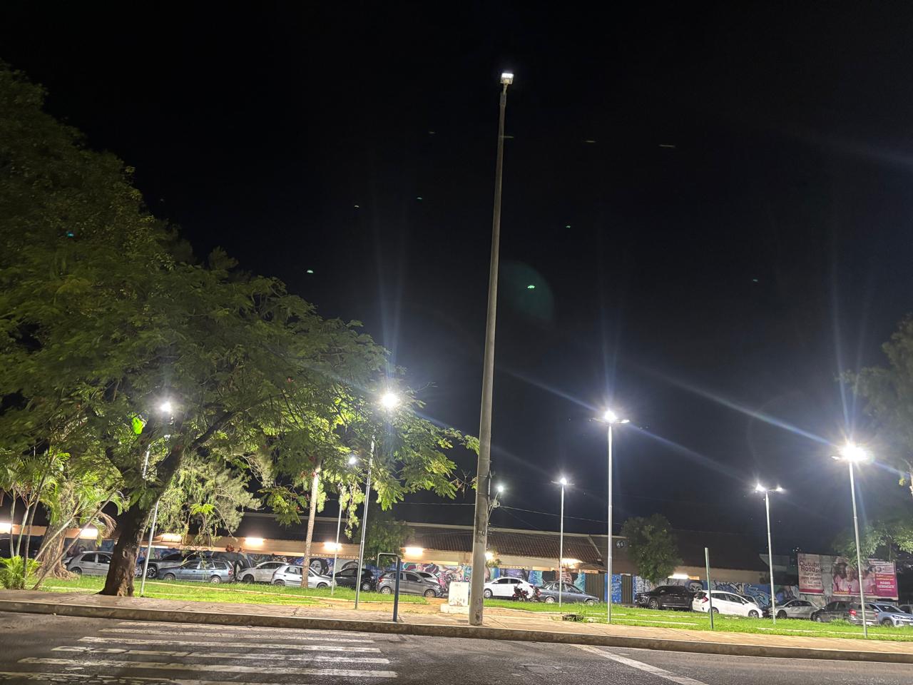 Entre as ações realizadas em 2025 está o projeto Caminhada Iluminada, que contempla a implantação e a manutenção da iluminação ao longo de pistas de caminhada e canteiros centrais, ampliando a segurança e o conforto de pedestres, especialmente no período noturno. A iniciativa contribui para incentivar a prática de atividades físicas, o uso adequado dos espaços públicos e a mobilidade urbana.