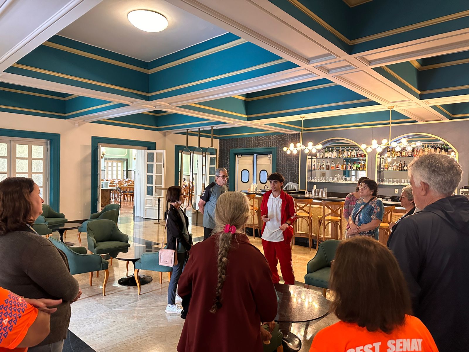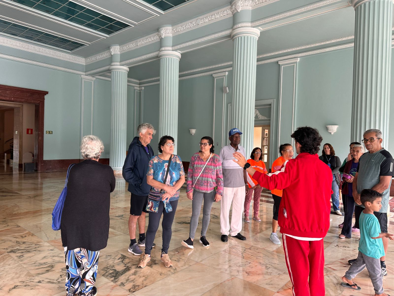 A ação, realizada pela Prefeitura por meio das secretarias municipais de Turismo e de Esportes, proporcionou aos participantes um passeio cheio de histórias, curiosidades e memórias. Conduzido por guia do próprio hotel, o tour apresentou detalhes da arquitetura, da construção do “castelo”, dos bastidores do espaço e de hóspedes ilustres que já passaram pelo local ao longo das décadas.