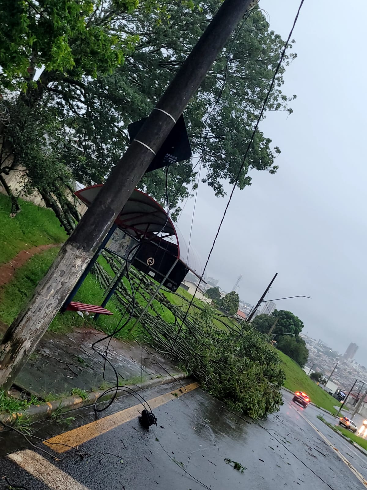 Nesta segunda-feira (09), a Prefeitura de Araxá, por meio da Secretaria Municipal de Serviços Urbanos, disponibilizou equipes para atender ocorrências de queda de árvores em diversos bairros da cidade, registradas em razão da ventania e da chuva forte.