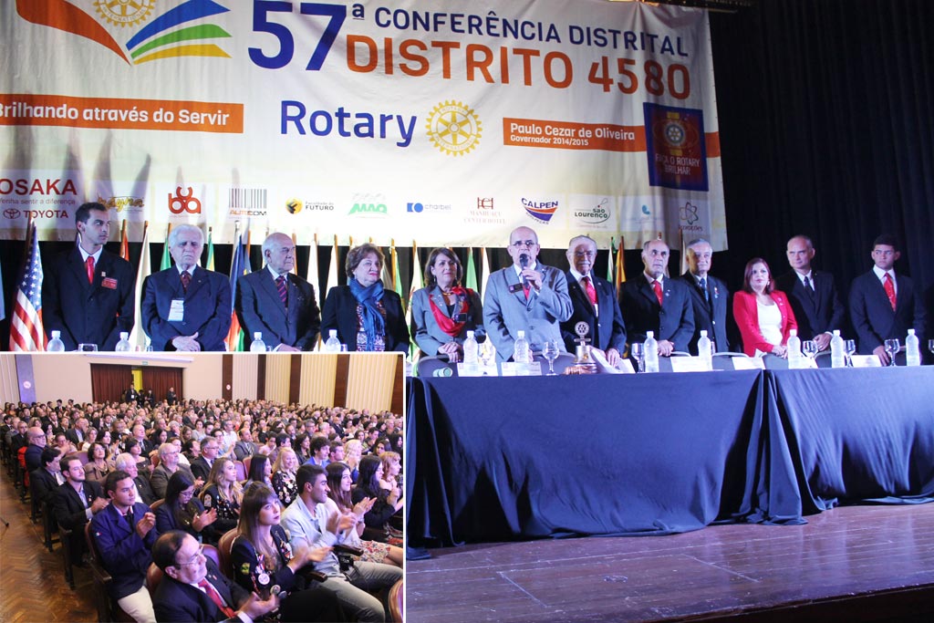 O evento que abordou o tema “Brilhando através do Servir” contou também com as entradas de bandeiras dos municípios participantes, das Casas da Amizade, do Rotaract e do Interact, e do intercâmbio de jovens.