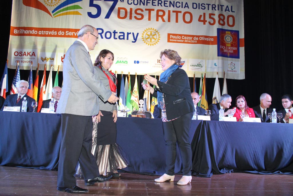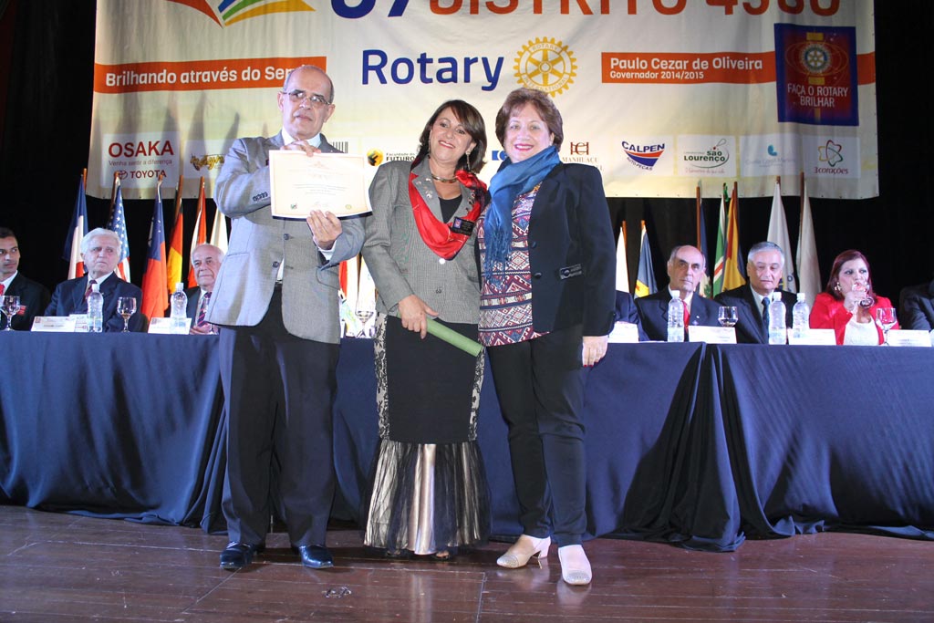 Durante a cerimônia, Lídia entregou uma certificação de Mérito de Reconhecimento Público que simbolizou a receptividade calorosa dos araxaenses com os rotarianos.