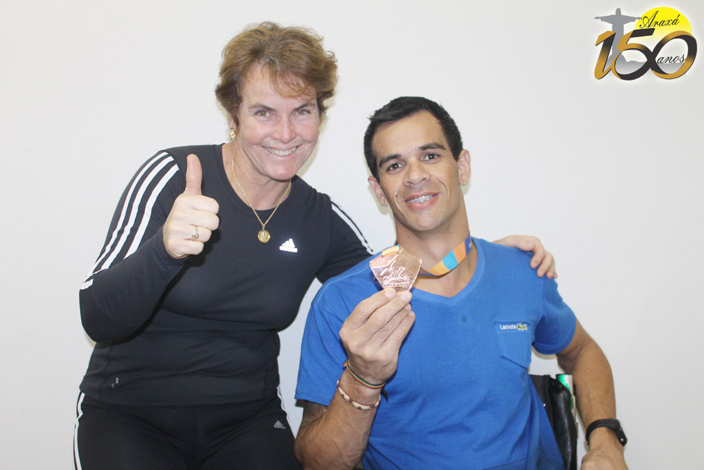 Thiago fez questão de mostrar a conquista para Jane Porfírio que, além de assessora, é desportista e sabe das dificuldades enfrentadas por um atleta na busca dos seus objetivos.