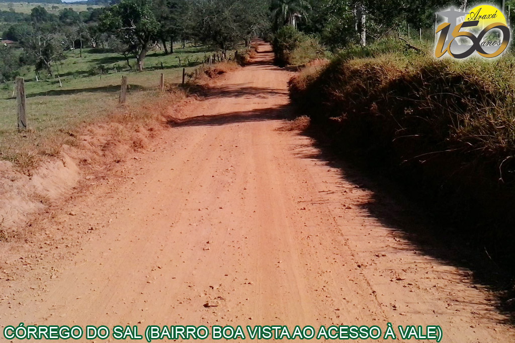 - Manutenção na estrada vicinal na Região do Córrego do Sal, começando do bairro Boa Vista até a avenida de acesso à Vale Fertilizantes, setor bastante ocupado por pequenos produtores, principalmente hortifrutigranjeiros.