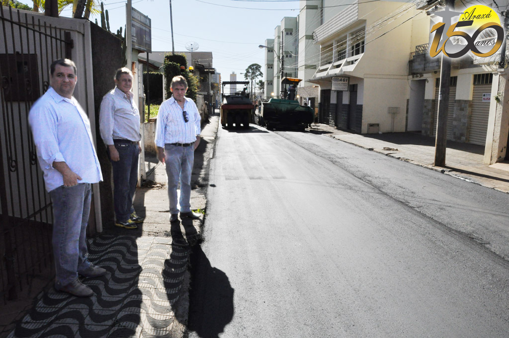 Nesta quinta-feira (13), o prefeito Aracely esteve na rua Calimério Guimarães, primeira via contemplada (trecho entre a Senador Montandon e Getúlio Vargas), acompanhado pelo secretário municipal de Serviços Urbanos, Marco Antonio Rios.