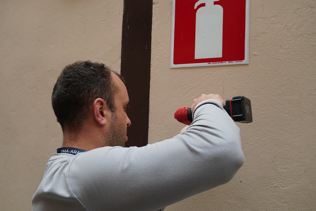 Estão sendo instalados extintores de incêndio, saídas de emergência, além da sinalização de emergência. Os projetos seguem as normas técnicas vigentes e variam conforme as necessidades da infraestrutura do local.