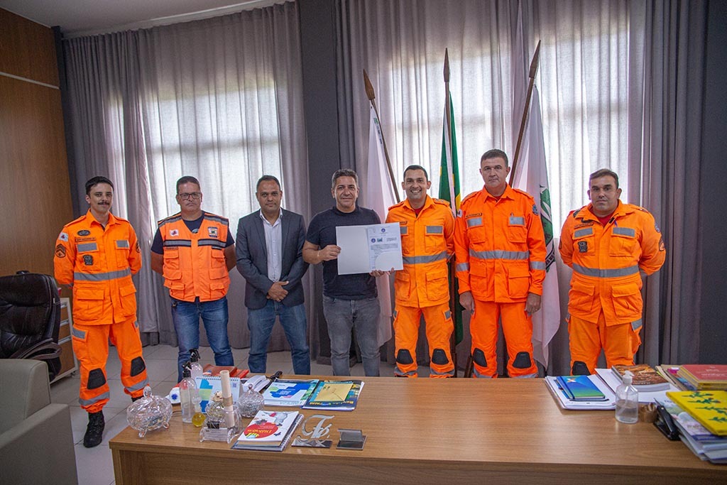 A Prefeitura de Araxá assinou dois convênios com a 2ª Companhia do Corpo de Bombeiros, nesta terça-feira (31). Os termos foram assinados pelo prefeito Robson Magela, com as presenças do comandante capitão Luiz Ricardo de Oliveira, major Thiago Augusto Pereira, subtenente Nogueira, sargento Ricardo, sargento Henrique e o secretário municipal de Segurança Pública, Daniel Rosa.