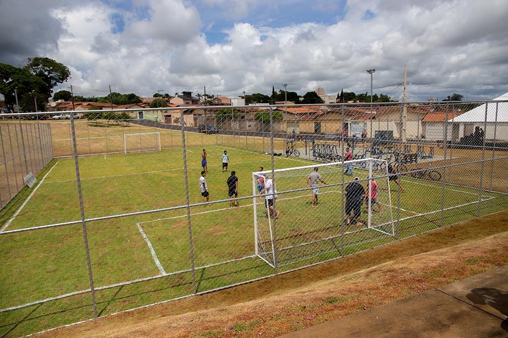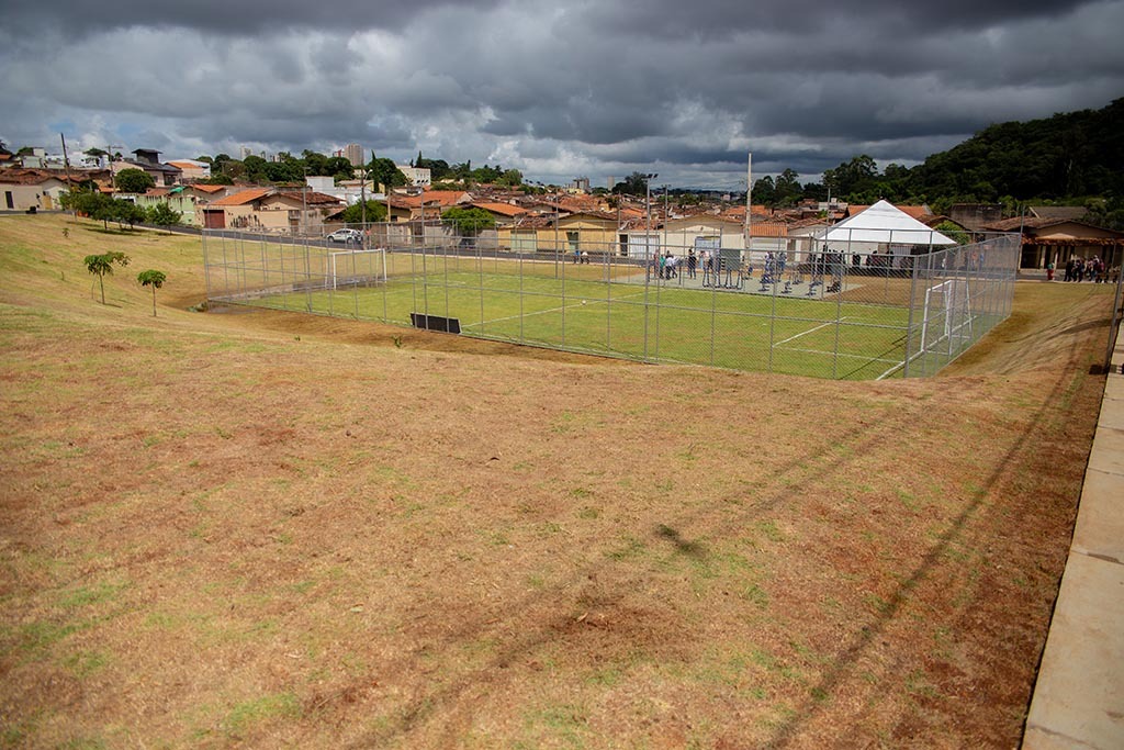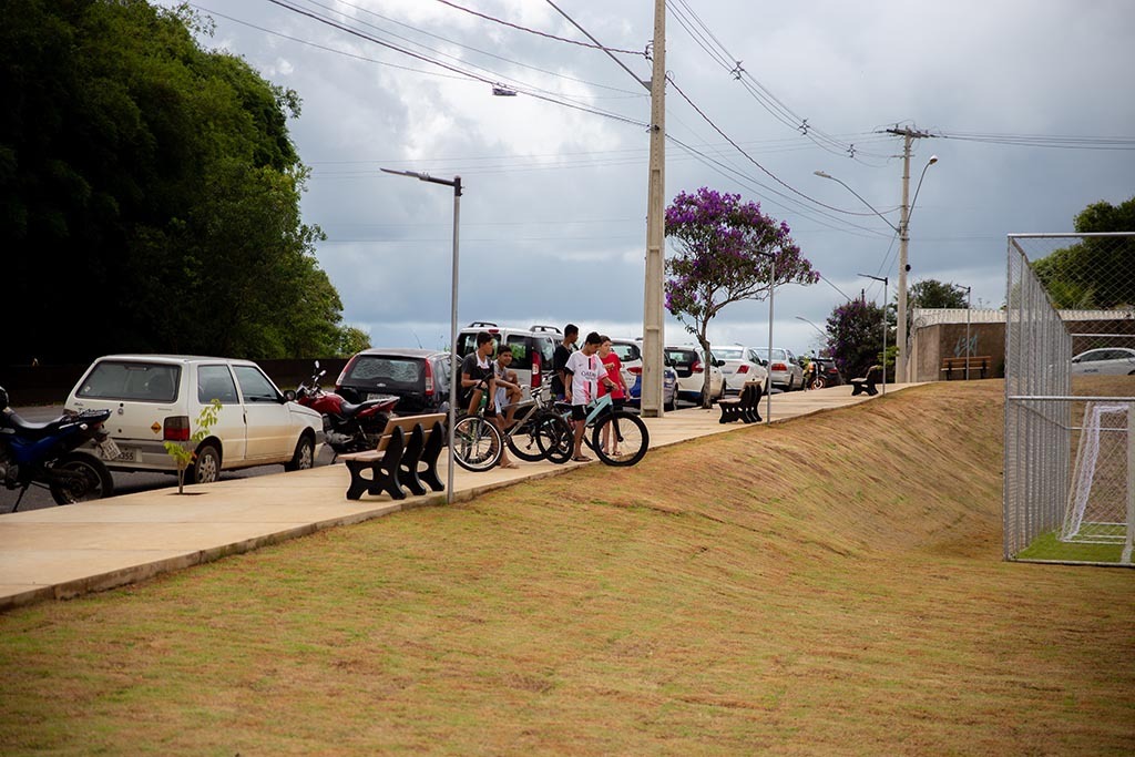 Agora a realidade é diferente. O espaço recebeu calçamento ao entorno, bancos de madeira ecológica, iluminação de LED, bebedouro, academia de ginástica ao ar livre, incluindo aparelhos para pessoa com deficiência (PcD) e campo de futebol society.