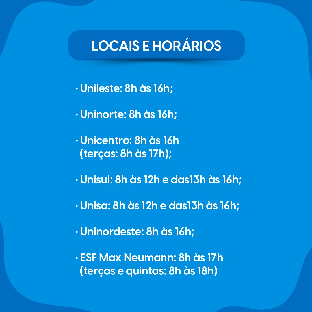 - Unileste: 8h às 16h;