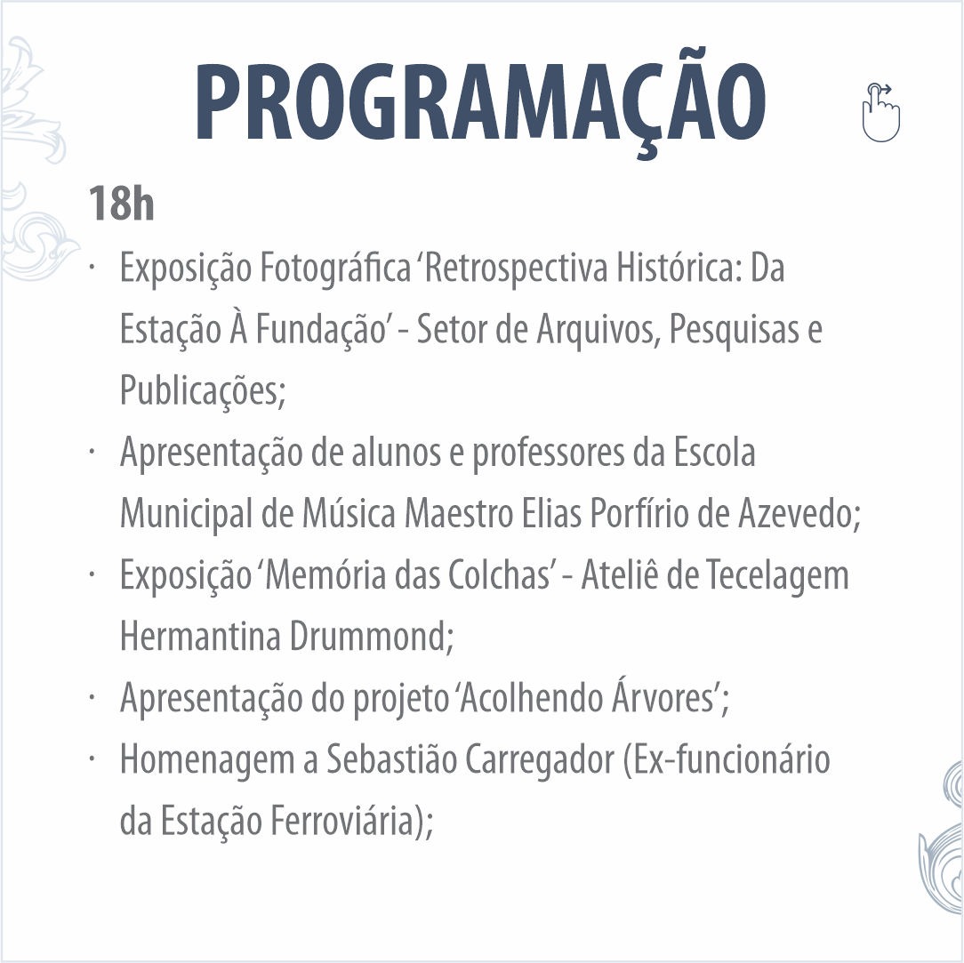 “O ano de 2023 ficará marcado pela reinauguração do prédio, que é um bem tombado, com todos os cuidados que tivemos para preservar a sua arquitetura. É um imóvel que teve uma grande importância em 1926, com a inauguração da Estrada de Ferro Oeste de Minas. O prédio não tem mais a função de transporte, mas continua com a proposta de encontros e reencontros da cultura. Não será apenas uma sede administrativa, mas também um palco para todas as manifestações culturais existentes na cidade”, destaca.