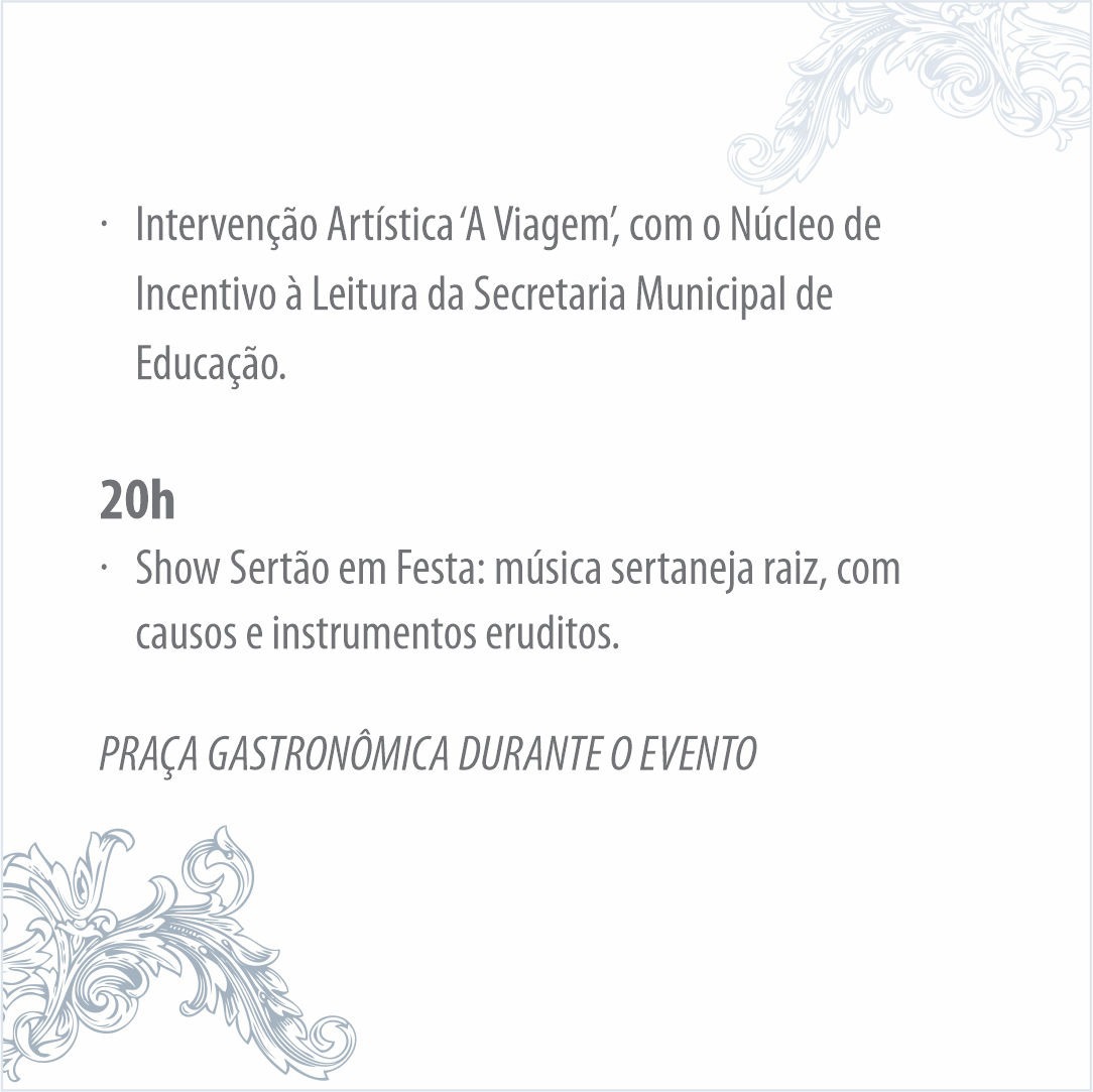 • Apresentação de alunos e professores da Escola Municipal de Música Maestro Elias Porfírio de Azevedo;