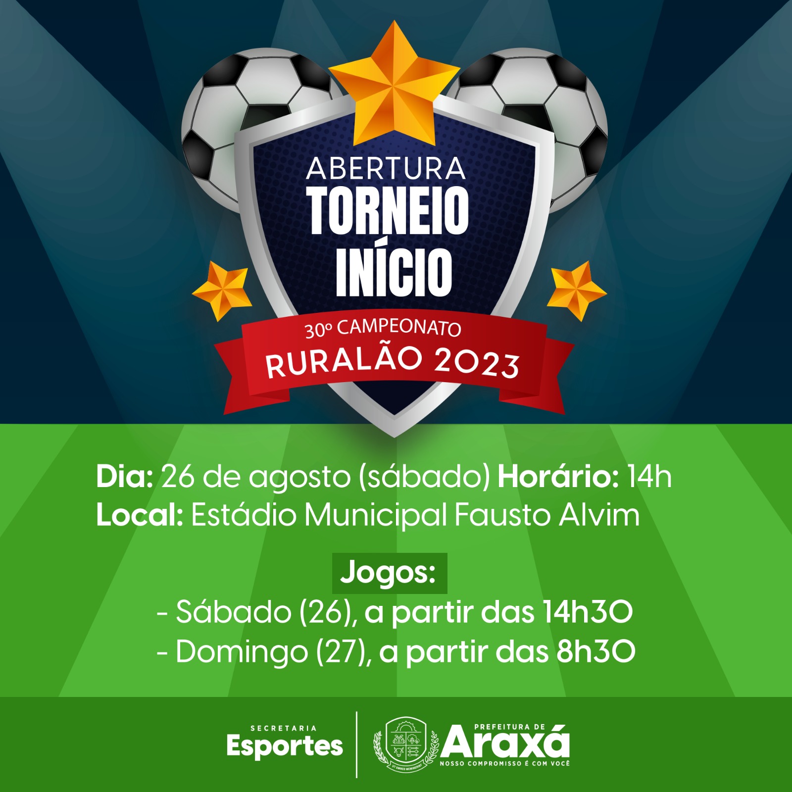 O 30° Campeonato Ruralão, a mais tradicional competição do homem do campo de Araxá e região, vai ser aberto com o Torneio Início neste sábado (26), a partir das 14h, e com jogos também no domingo (27), a partir das 8h30, no Estádio Municipal Fausto Alvim. Já a primeira rodada acontece no dia 3 de setembro.