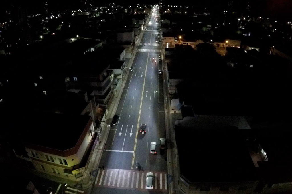 A avenida Senador Montandon ganhou também uma moderna iluminação de LED, que garante economia para o município e colabora com a segurança dos usuários da via.