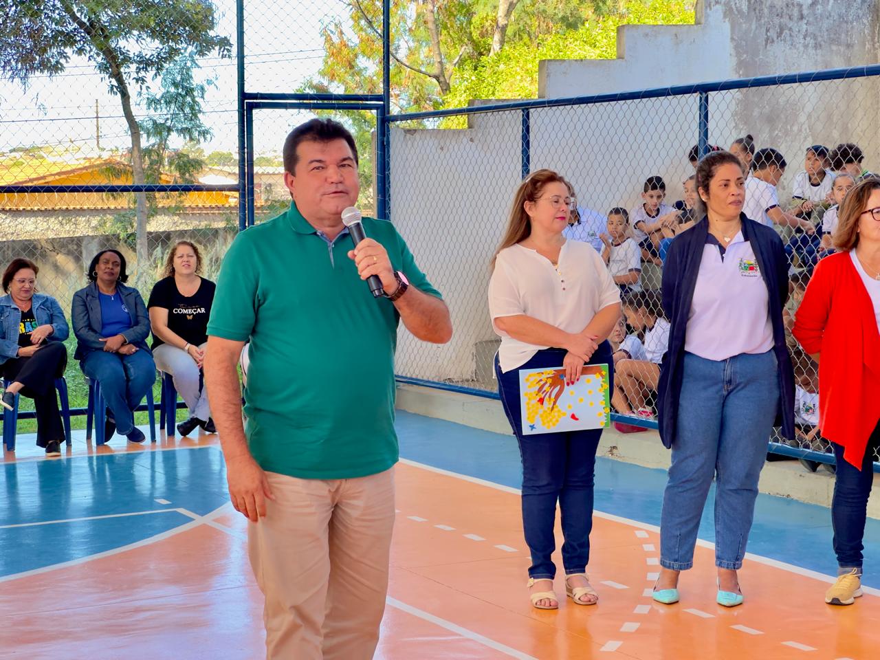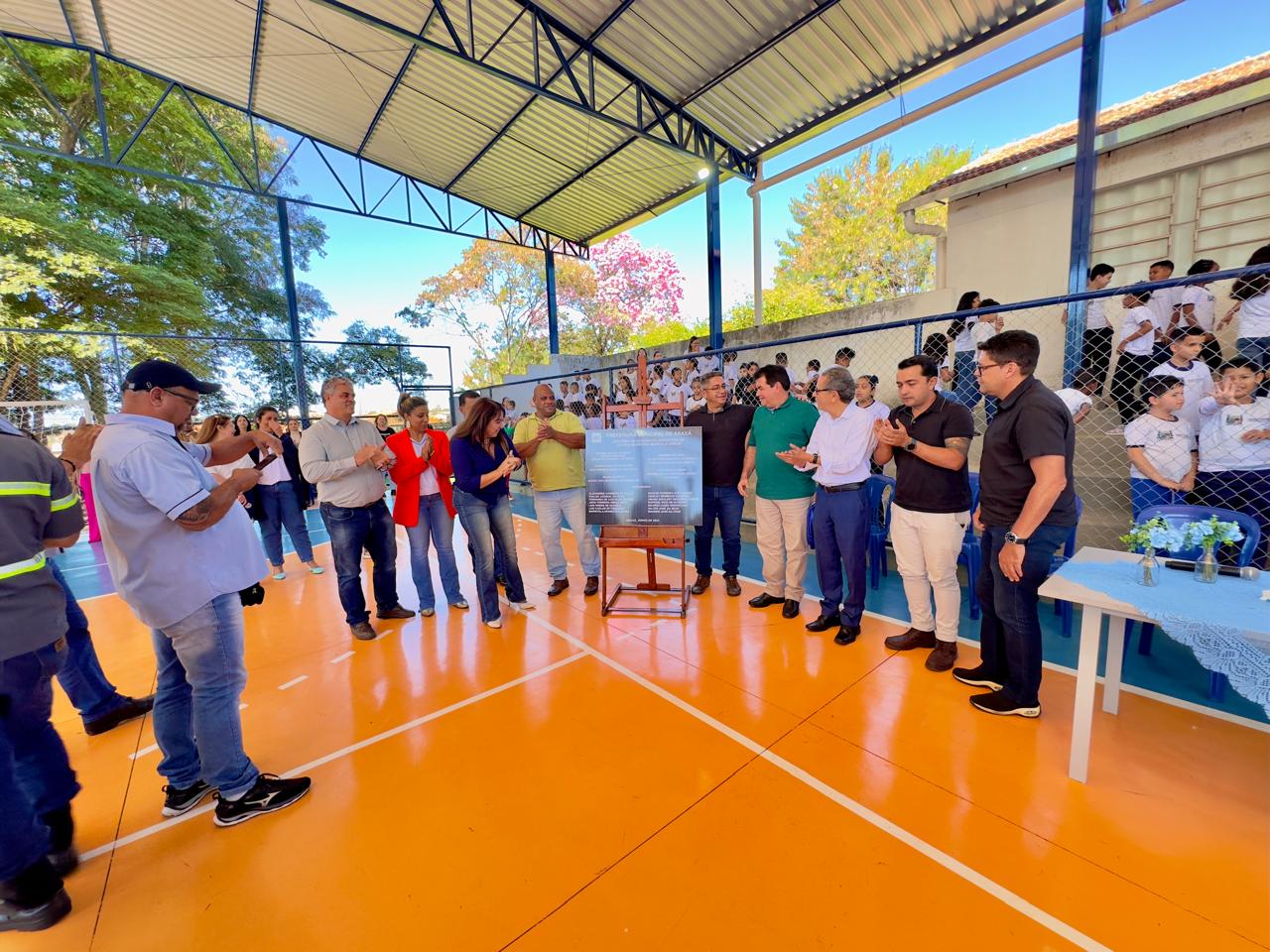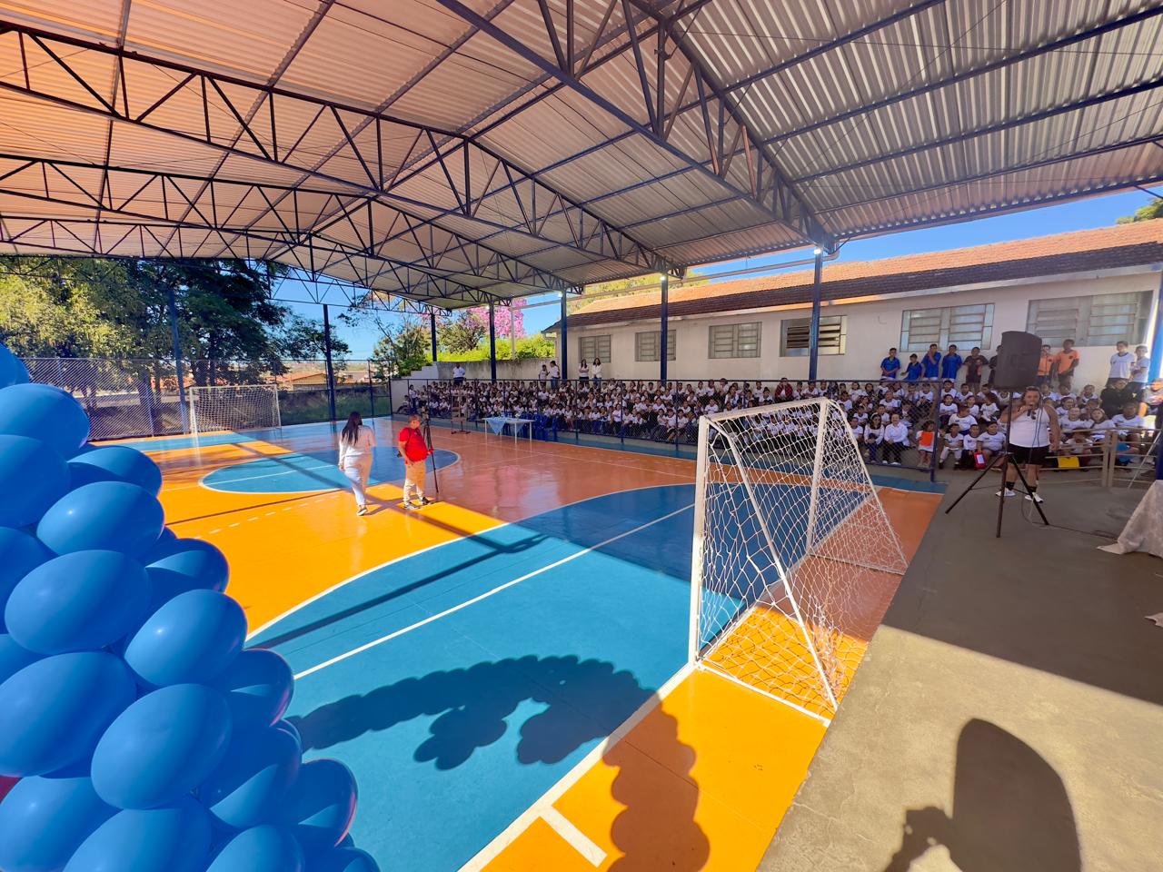 Um ambiente mais seguro e adequado para a prática de esportes. A Prefeitura de Araxá reinaugurou o ginásio da Escola Municipal Manoela Lemos, no bairro Urciano Lemos, nesta terça-feira (18). O momento contou com a participação de alunos, professores, membros da comunidade escolar, além de secretários municipais e vereadores.