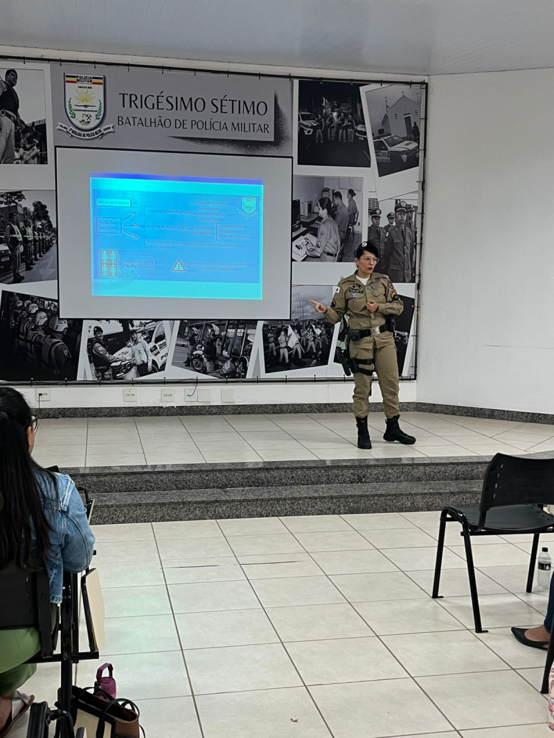 Durante a capacitação, foram abordados temas como a história de Maria da Penha, os tipos de violência previstos na lei, o ciclo da violência, os sinais da violência, funcionamento da rede de apoio e os caminhos para denúncia e acolhimento.