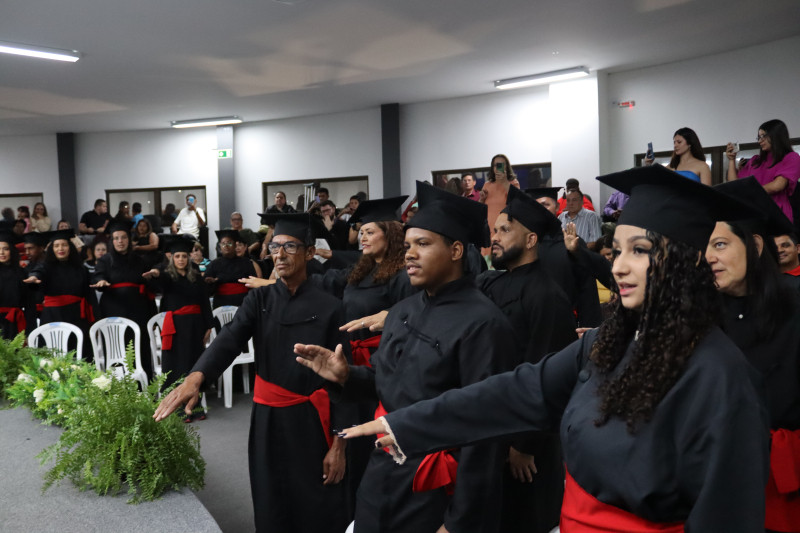 Foram 11 concluintes do Ensino Fundamental e 17 do Ensino Médio, vinculados ao Centro de Estudos Supletivos (CESU) Padre Evaristo Afonso. Além da sede do CESU, as turmas funcionaram em unidades descentralizadas: Escola Municipal Alice Moura (Vila Silvéria), Escola Municipal Agar de Afonseca e Silva (Pão de Açúcar IV) e Escola Municipal Romália Porfírio de Azevedo (Max Neumann). Os formandos têm idades entre 15 e 70 anos.