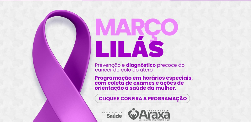 O mês de março é marcado pela campanha Março Lilás, que tem como objetivo sensibilizar as mulheres sobre a importância da prevenção e do diagnóstico precoce do câncer do colo do útero. Em Araxá, a Secretaria Municipal de Saúde intensifica as orientações e também promove ações e atendimentos especiais nas Estratégias de Saúde da Família (ESFs) ao longo do mês.
